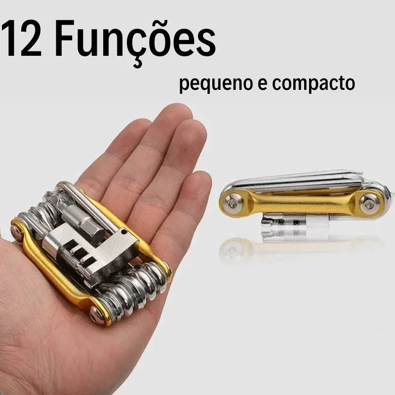Cadeado Multifunção com 12 Ferramentas: Chave, Corrente, Espátula e Mais, Ideal para Reparos de Bicicleta, Bike e MTB, Compacto